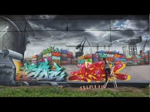 Este video es de un muro gigante de 700 metros pintado por MAD-C ella sola.
